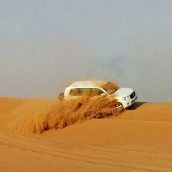 Once you’re safely seated in the 4×4, it’s time to embark on your Dune Bashing ride. The driver will take you on a thrilling ride, speeding across the desert as you bounce and skid across the shifting dunes. The experience is filled with excitement as the vehicle climbs to the top of dunes and then suddenly drops down steep slopes, creating a feeling of weightlessness.